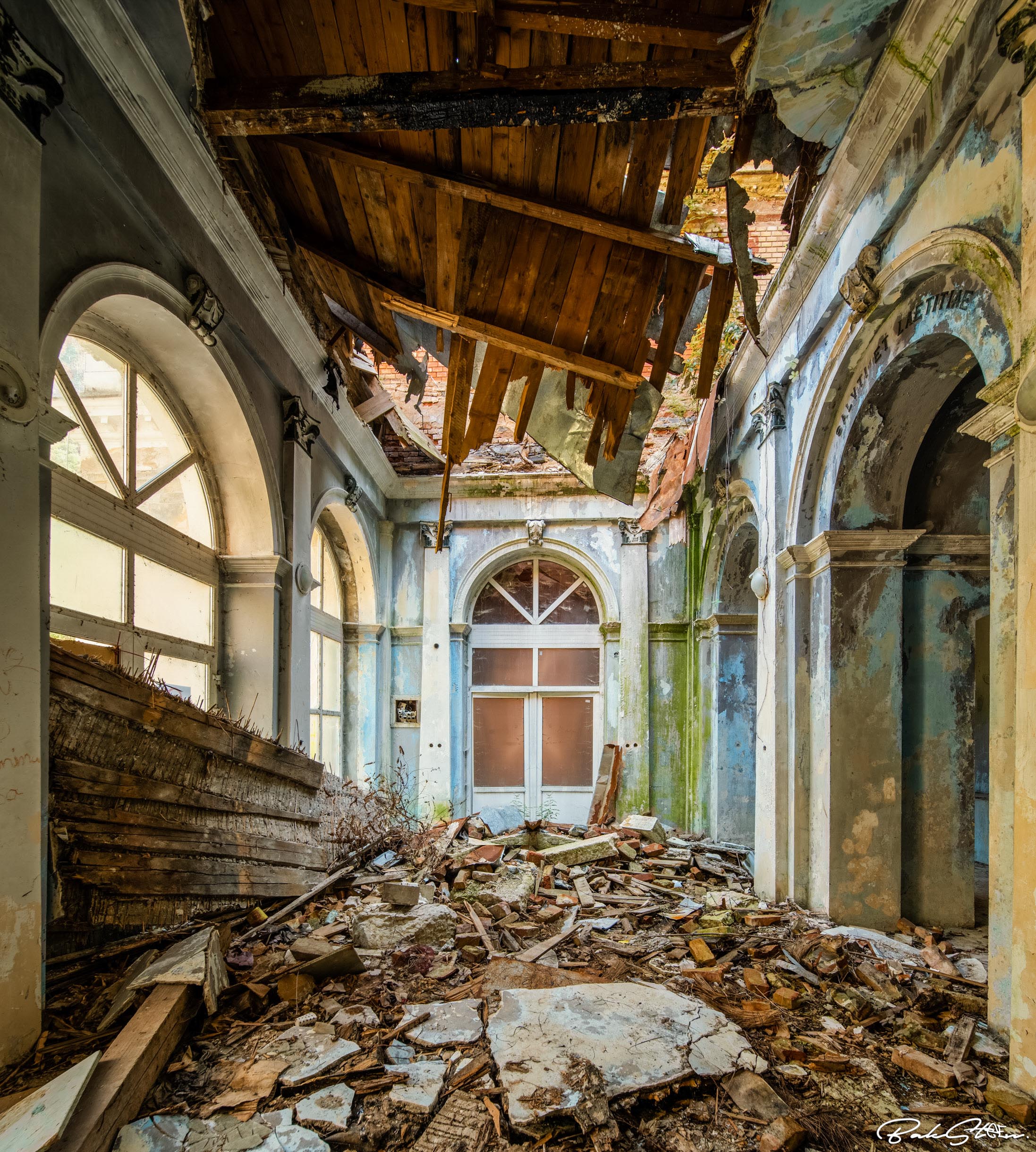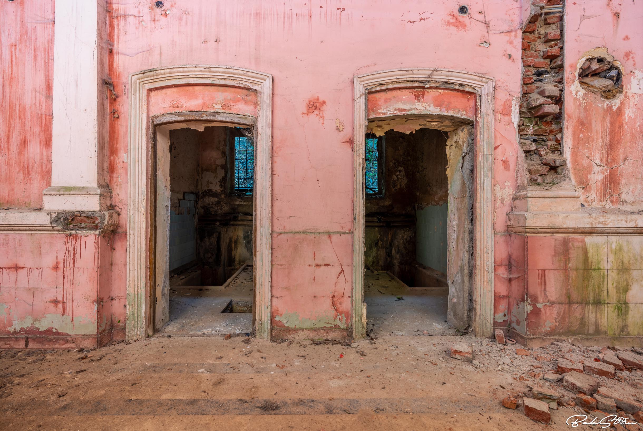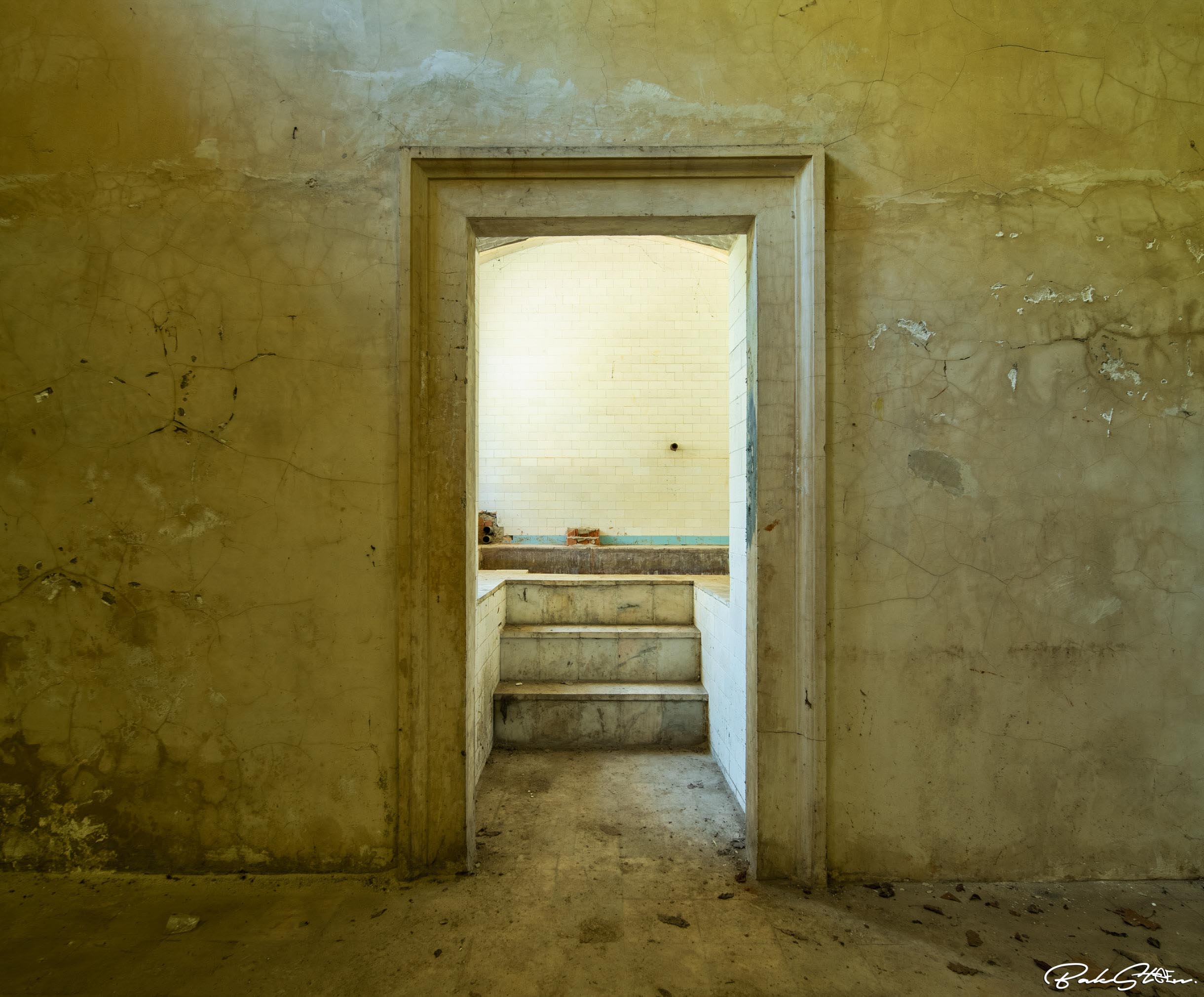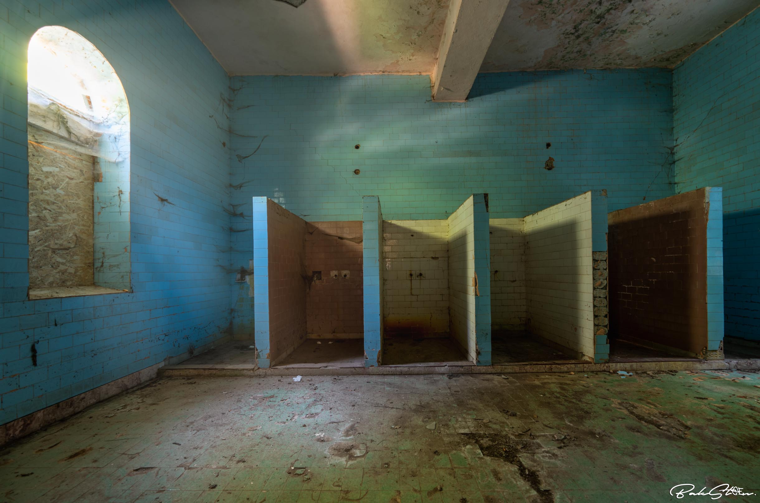 Definitely the most impressive abandoned bathhouse I’ve ever entered. Actually, I’ve visited the location three times in 24 hours. This because the first time somebody told us to leave. The second time the sun was too bright. The third time I finally succeeded. It took me a lot of effort, but all worth it of course.