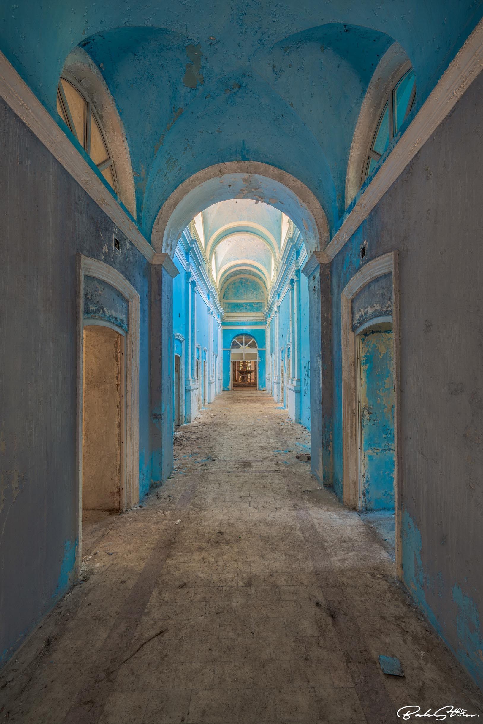 Blue hallway